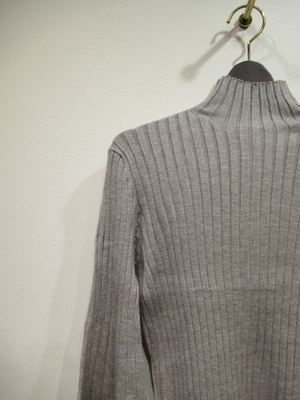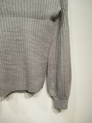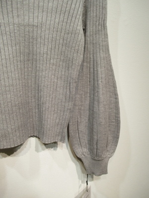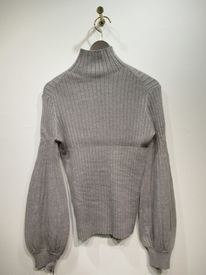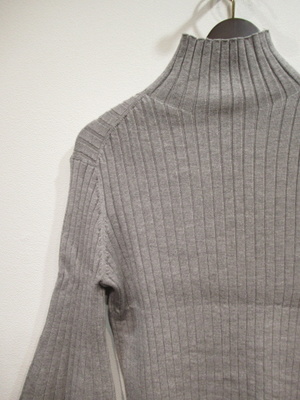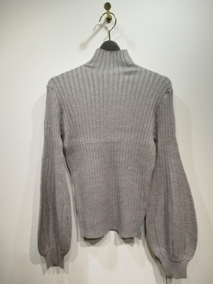 ハイネック 太リブのニット 袖は肘下はボリュームあり 袖口リブ 手洗い可能