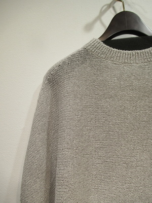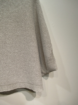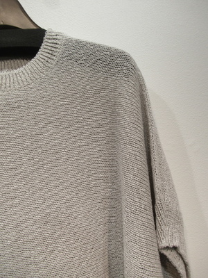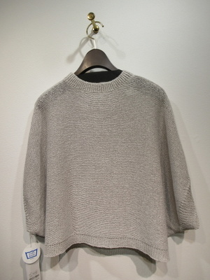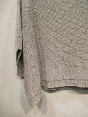 身幅広め、身頃からそのまま袖、和紙の糸を使用、手洗い可能、短丈、袖口・裾・襟ぐりリブ編み