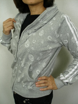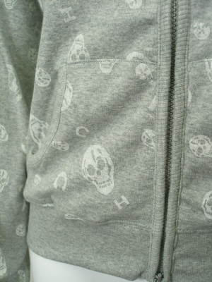 キャサリンハーネルのロゴ「CH」とスカルを散りばめたプリントがキュートなパーカ。コンパクトなデザインです。