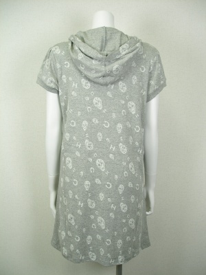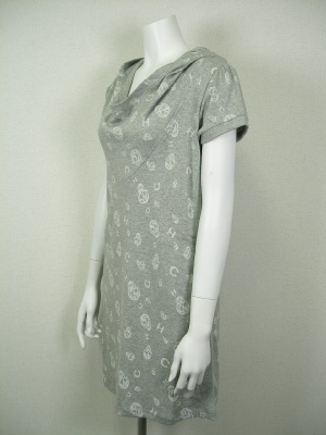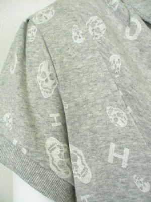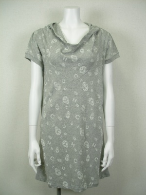 キャサリンハーネルのロゴ「CH」とスカルを散りばめたプリントがキュートなワンピース。裏地無し。パンツやレギンスを合わせて。