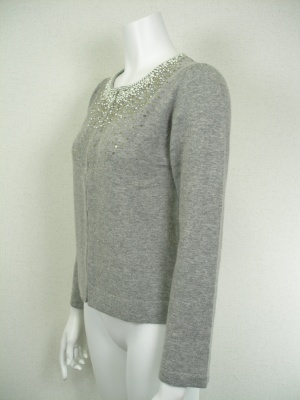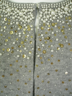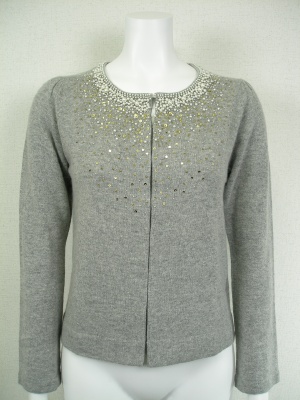 ビーズとスパンコールを散りばめた上品なニット。アンサンブルになる半袖ニットもございます。(ベージュ1枚目の写真はアンサンブルで着ています)