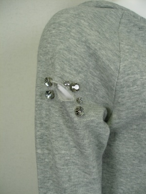 右の袖の辺りにビーズの飾り(周辺は切り込みが入る)が、他にはポケットのところにも同様の飾り