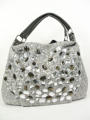 キラキラの装飾をたっぷり付けたメッシュバッグ。クタッとしているのでショルダーとして持っても決まります。