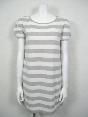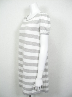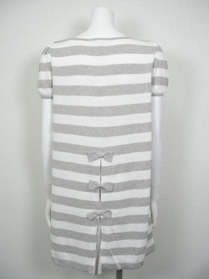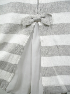 後ろに3つ並んだリボンが可愛いニットワンピース。リボンの内側からシフォンがチラリとのぞきます。裏地なし。