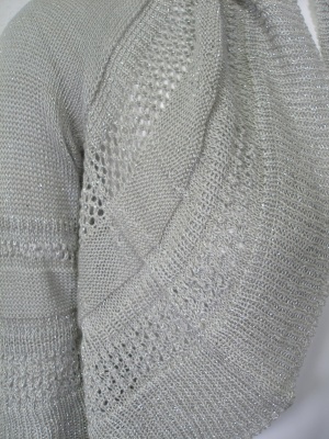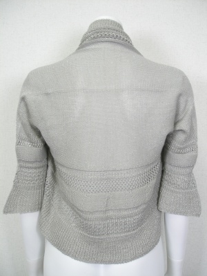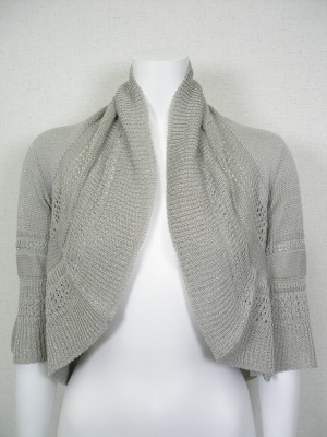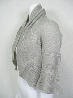 ホールガーメント(無縫製で縫い目がない)のニットボレロ。ノースリーブワンピースに合わせたい。