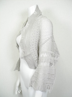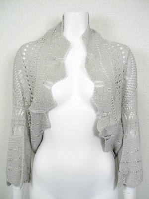 サークル編みのレーシーなボレロ。上下を逆さまにしても同じデザインです。