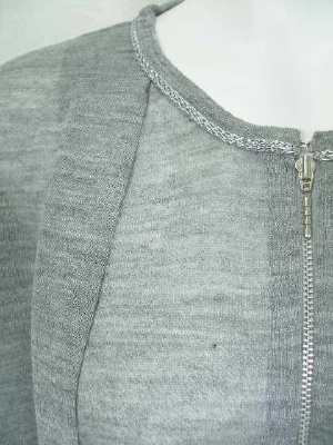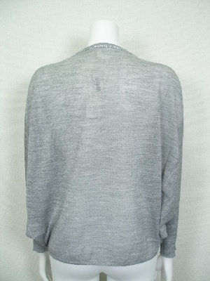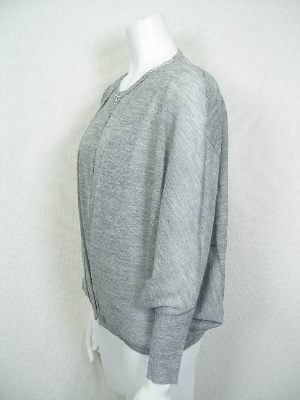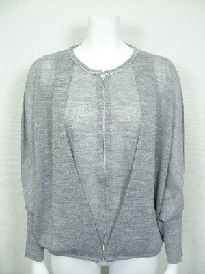 ドルマンスリーブのジップアップカーディガン。ジッパーとネック周りのゴールドがアクセント。薄手のニット素材です。