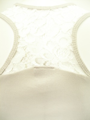 重ね着した時に見える、ストラップから背中にかけてのレースがポイント。