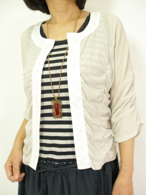 きちんと感がありつつ涼しい着心地のジャケット風カーディガン。