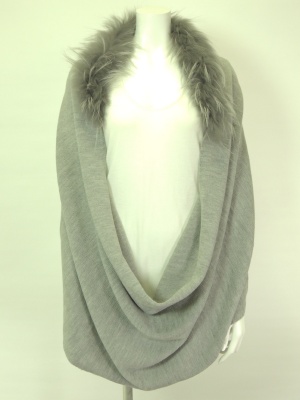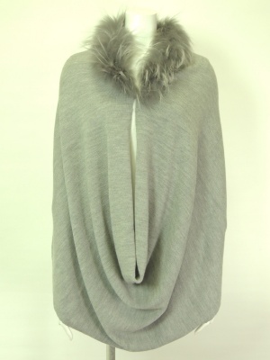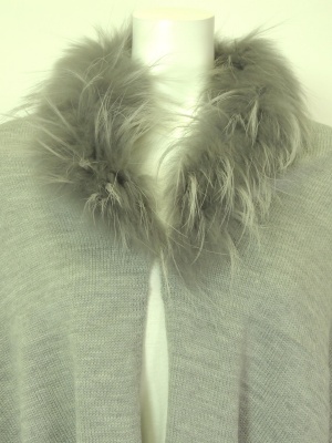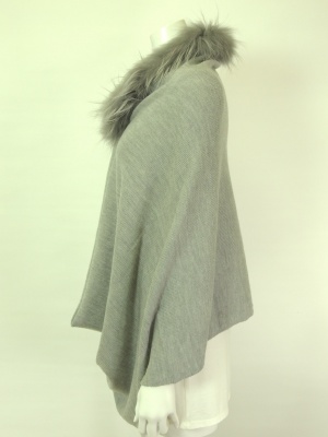 すっぽりかぶってホックを留めればケープ風、ホックを外すとポンチョ風、腕を通せばカーディガンのようです。