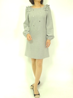 肩のフリルがポイントのフェミニンなワンピース。