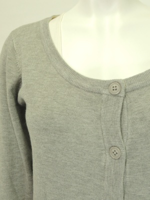 ネックラインがスッキリ開いたシンプルなカーディガンです。