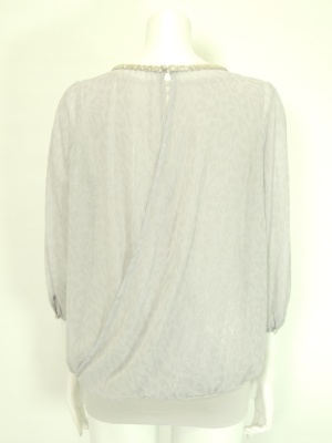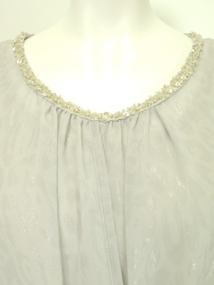 ネックは細かいスパンコールとビーズでトリミングしています。
