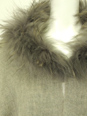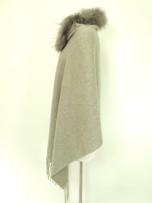 チャイニーズラクーンのふわふわのファーが可愛いポンチョ。