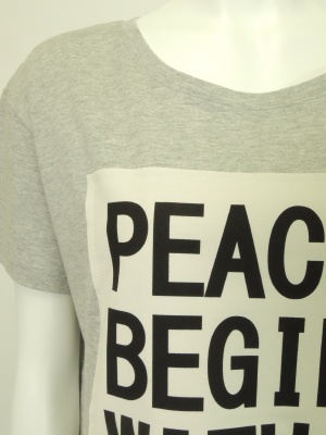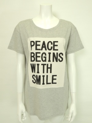 前身頃にはプリントではなくロゴ入りの別生地が重ねてある、形はシンプルな半袖デザイン