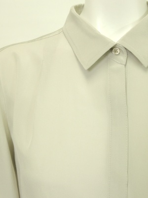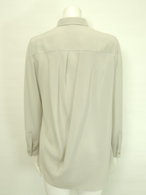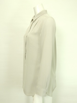 ほんのりとした透け感のある、シルク100%のシャツブラウス。