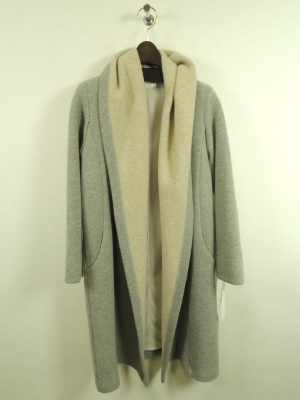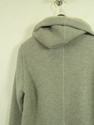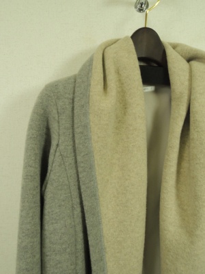 ダブルフェイス生地 裏地あり フード襟のようなボリューム感のある襟からそのまま前立てに流れるシルエット ボタンなし ポケット有り