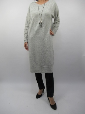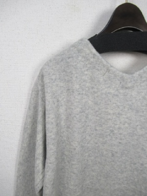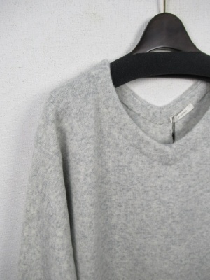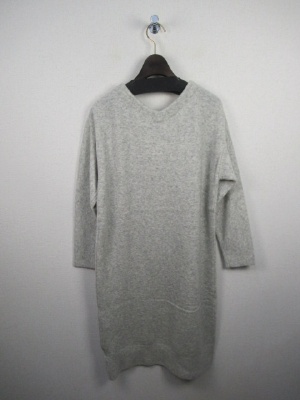 Vネックのニットソー生地の使用 丈長ロングニットワンピース 裾と袖口はリブ編み 手洗い可能