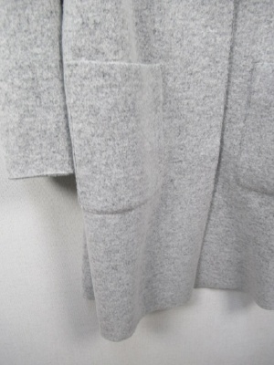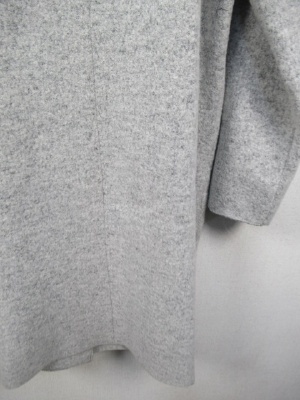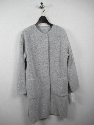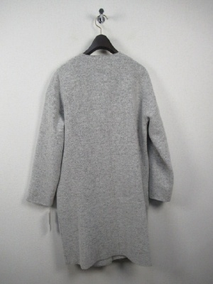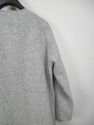 圧縮ウール 丸襟 前ホック 大きなポケット 裏地あり ダークブラウンはカーキがかったチャコールグレーのような茶系です。