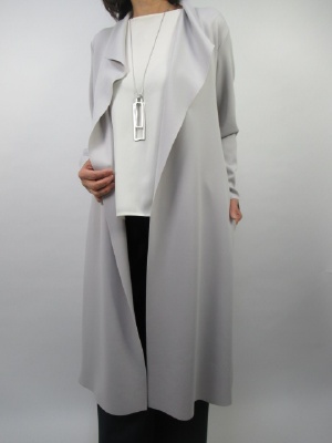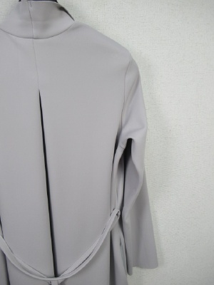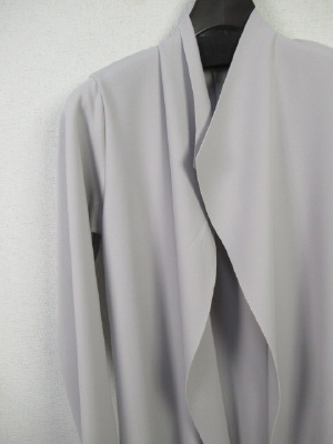 着流しコーディガン、ウェストに共の紐付き(取り外し可能)、後ろ中央タック入り、縁は切りっぱなし