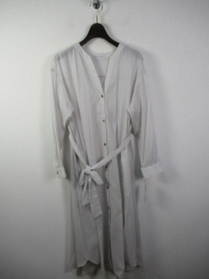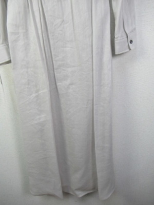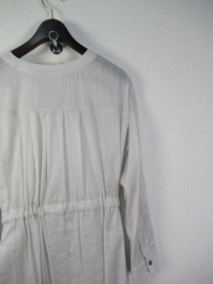 ロングシャツタイプの羽織ワンピース Vネック 後ろ背のところギャザー 脇スリット 裾はラウンドしたシルエット 脇ポケット 手洗いOK