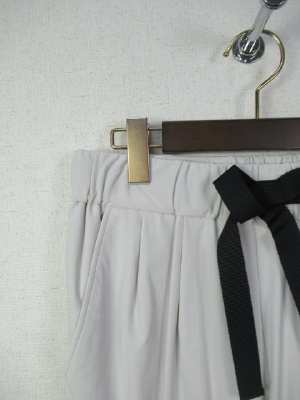リボンパンツ、ウェストゴム、タック入りデザイン、テーパード、脇ポケット