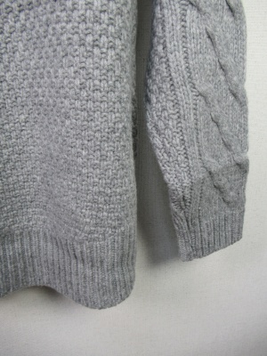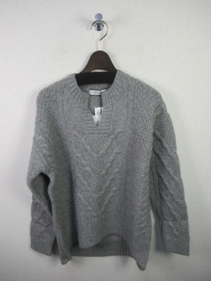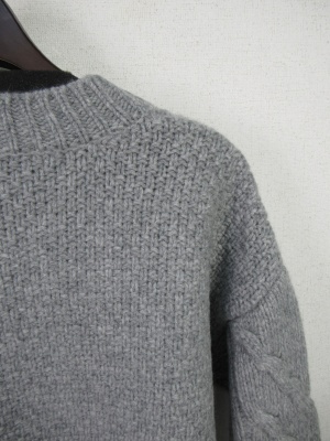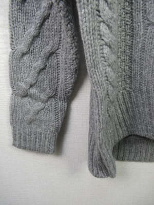 Vネックのような胸元スリット ケーブル編み 中細ニット 前上がり