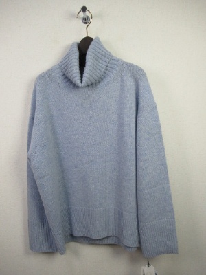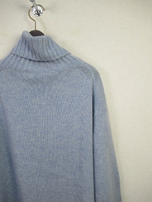 中細ニットのビックシルエットタートルニット 袖は太め 前上がりデザイン タスマニアラム(環境に優しいタスマニア島で厳選されたされたラムウール使用)