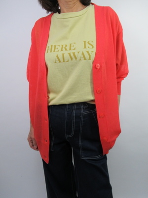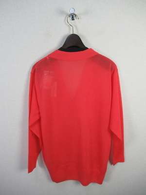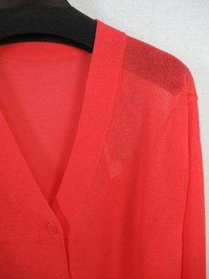 やや丈長カーディガン、前ボタン、透け感のある生地、手洗い可能