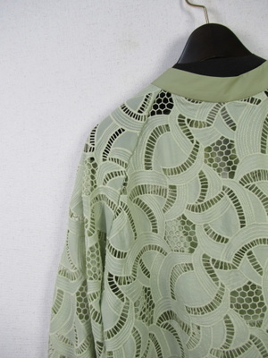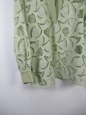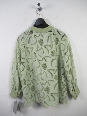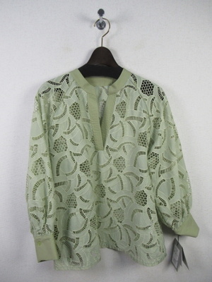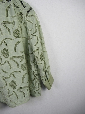 カットワークレース生地のブラウス スキッパー襟 襟ぐりと袖カフスは同色の無地 手洗い可能 スカートあり