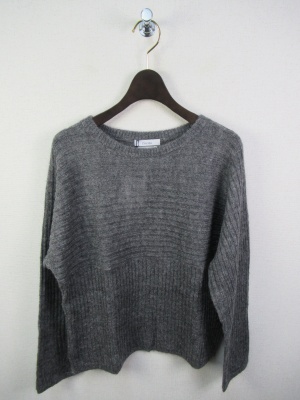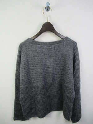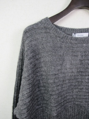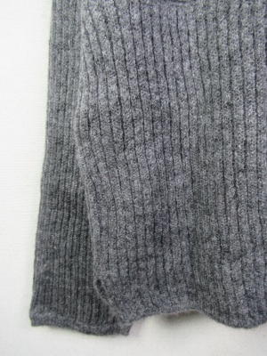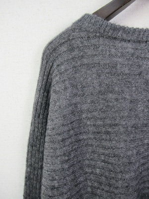 少し毛足の長い糸 編み地は畦編みを身ごろの中央で変えて上半身から袖は横 下半身は縦になる