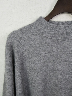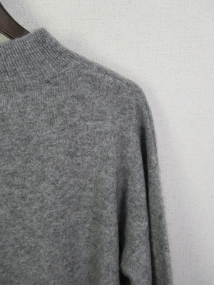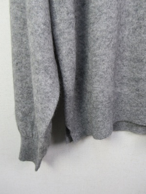 少し毛足のあるニット ふんわり型 ハイネック ボリューム袖ドロップショルダー 裾脇スリット