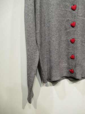クルーネックカーデ ハート型のボタンを赤でくるんだボタンが特徴 手洗い可能