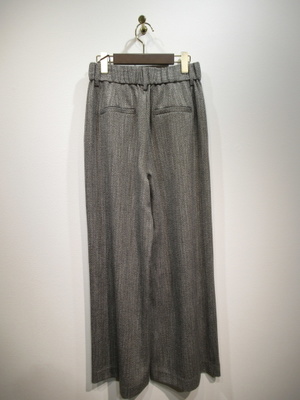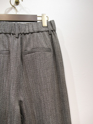 フロントタック入りワイドパンツ ヘリーンボーン柄 裏地なし 前ファスナー ウエスト後ろゴム