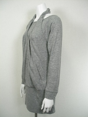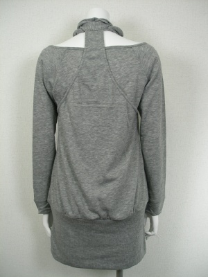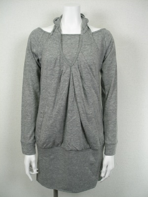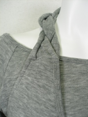 ホルターネックのようなタンクトップを重ねて、裾のリブで2枚がつながっています。ネックの部分はねじりを加えた面白いデザイン。