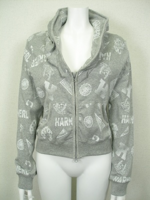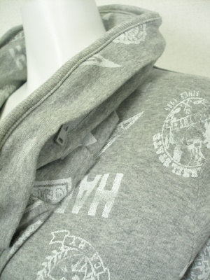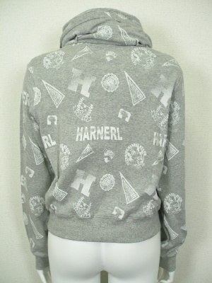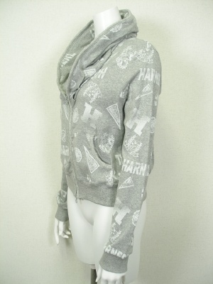 キャサリンハーネル好きにはお馴染みデザインのパーカが新柄で登場。フードは襟に内蔵されています。