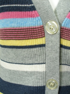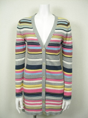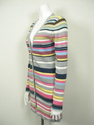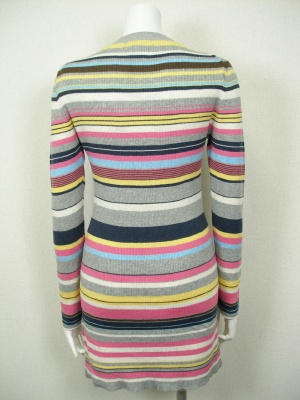 マルチボーダーのリブニット。スッキリ見せてくれるロング丈です。表示サイズより若干小さめ。(9号は8号、11号は10号くらいのサイズ感)