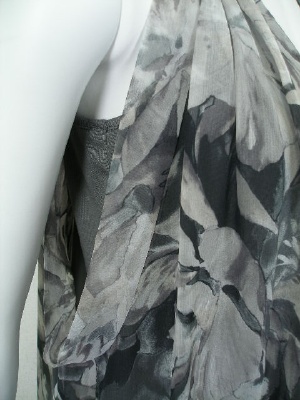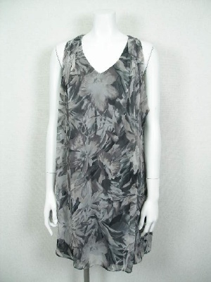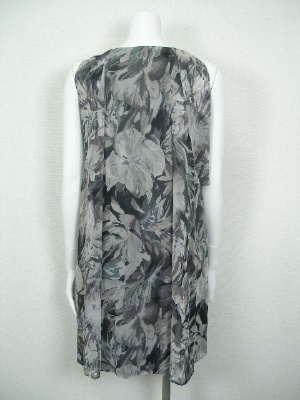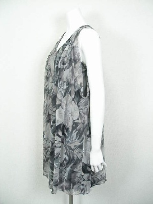 南国っぽい花柄のシフォンワンピース。アームホールは広く開けて、インナーのカットソーを見せるデザイン。インナーはネック部分で繋がっており、裾はワンピースとほぼ同じ長さです。