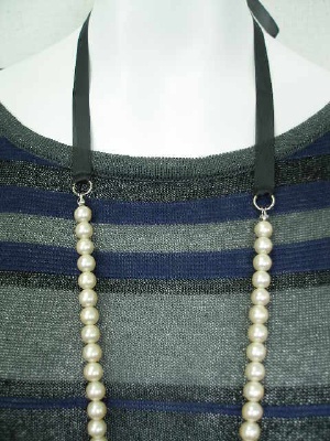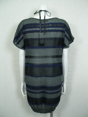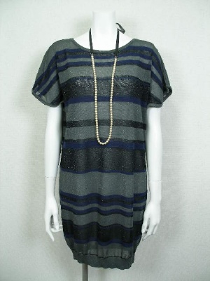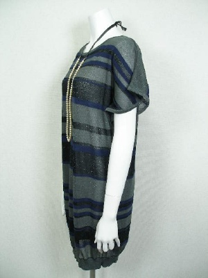 ラメボーダーのニットワンピ。裏地なしで、やや透けます。ネックレス付き。