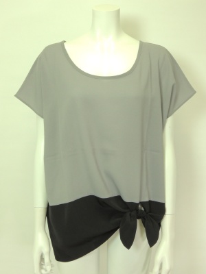 裾の切り込みで結んでワンポイントに。
