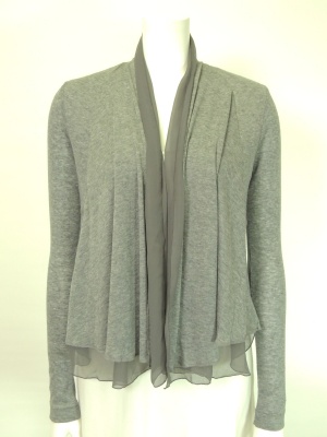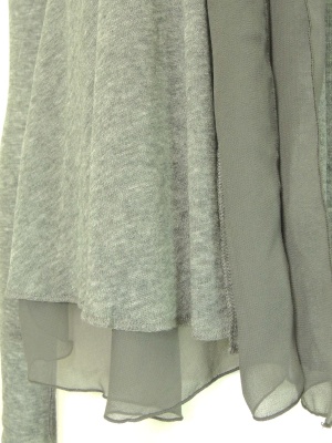 内側にシフォンを重ねたドレープたっぷりのカーディガン。