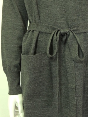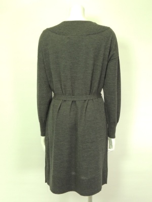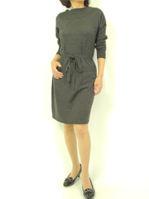 ストンとしたシルエットのニットワンピで、ベルトでウエストマークします。