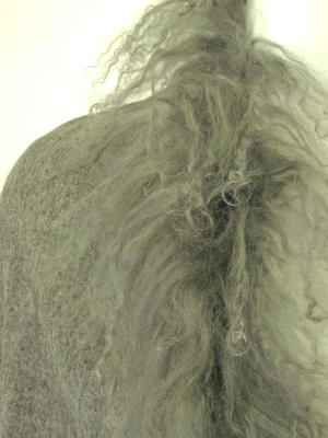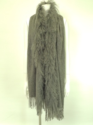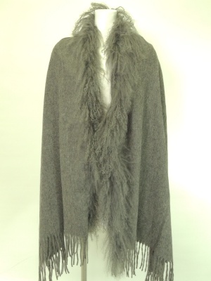 カールした羊毛皮がボリューミーな大判ストール。