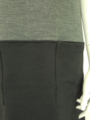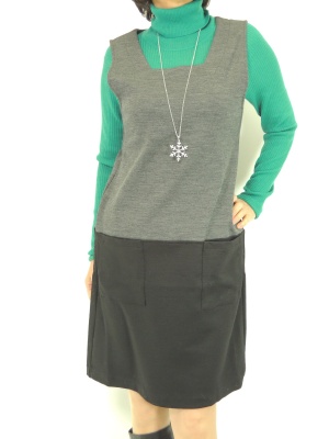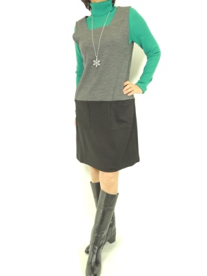 すっきりしたスクエアネックで、タートルを合わせやすいデザイン。