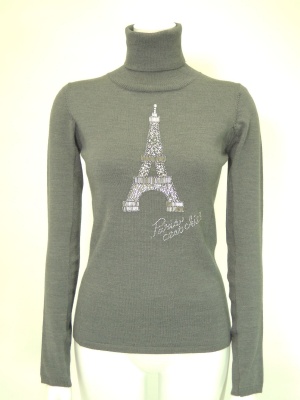 ビーズとスパンコールのエッフェル塔が可愛いタートルニット。