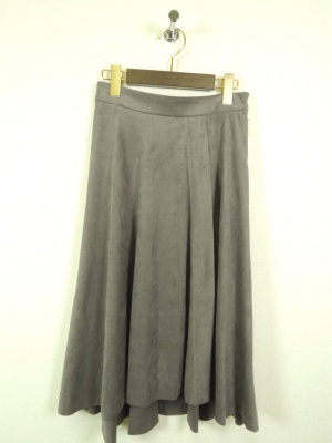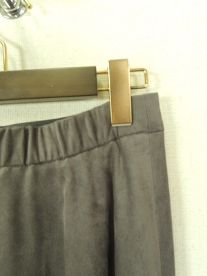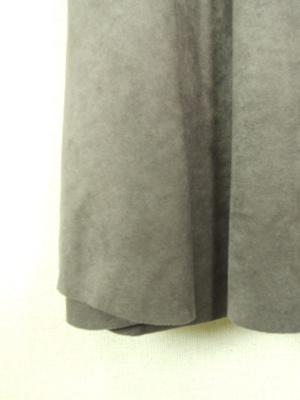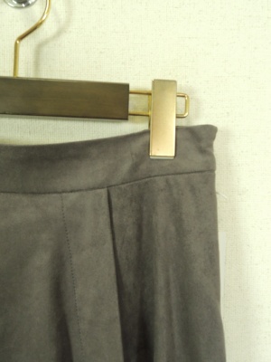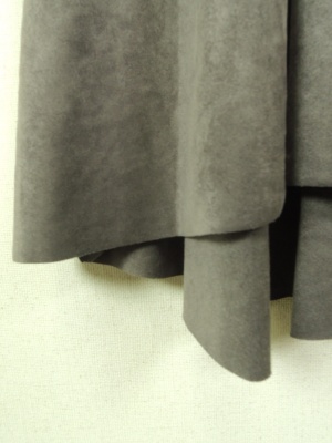 フェイクスエード 前後差のある裾丈 ウエスト後ろ部分ゴム 横ファスナー 裏地付き ラップ風のタック