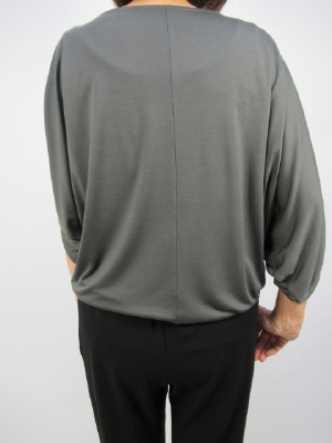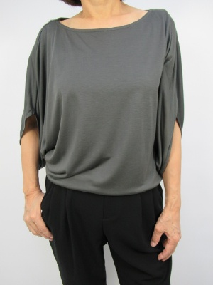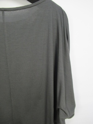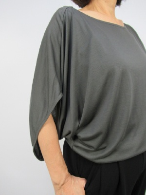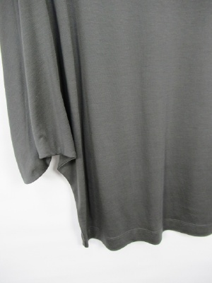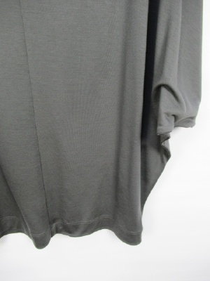 落ち感のある素材なので裾は腰で止まるデザイン、ドレープがかったシルエット