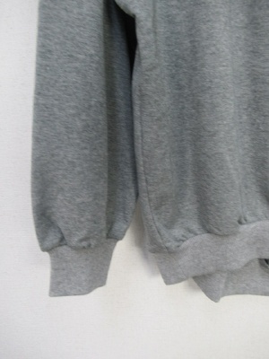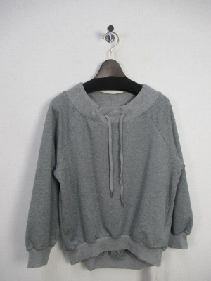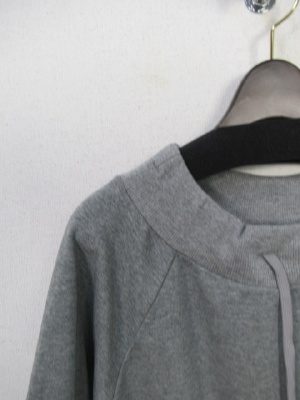 首ラインは紐で絞りができる 前上がりデザイン 裏毛のスウェット生地 全体に緩め ラグラン袖 裾はリブですぼんでる 手洗いOK