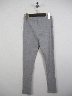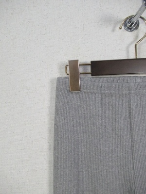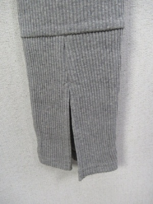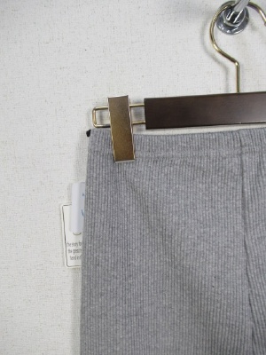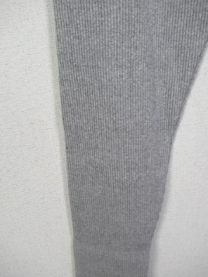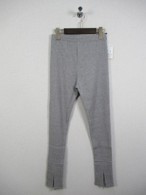 テレコ素材のレギンス、裾に切り替えありで前スリット入り、手洗い可能、ライトグレーのお色は白に近いです
