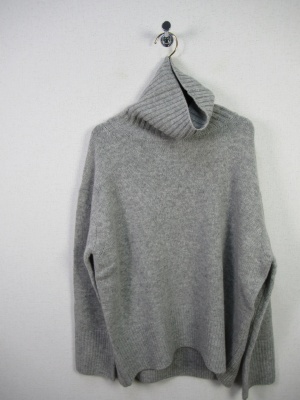 中細ニットのビックシルエットタートルニット 袖は太め 前上がりデザイン タスマニアラム(環境に優しいタスマニア島で厳選されたされたラムウール使用)